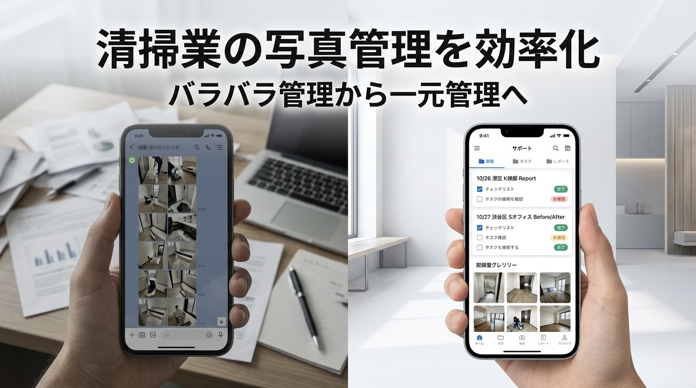 本記事では、清掃業における写真管理の課題を整理し、効率的に管理する方法と最適な手段について解説します。